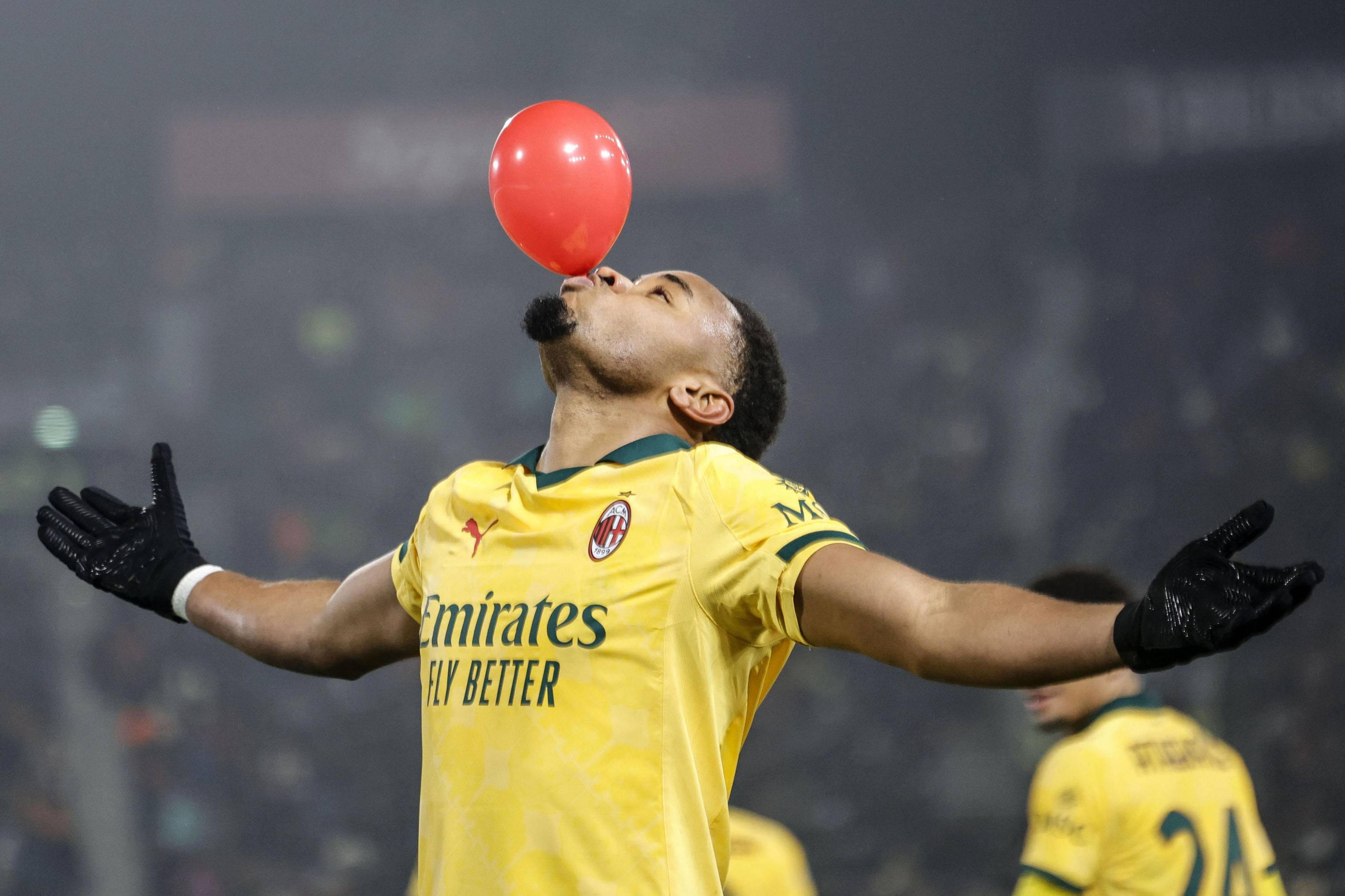 2月3日,AC米兰队球员恩昆库庆祝攻入球队第二球。 新华社/欧新