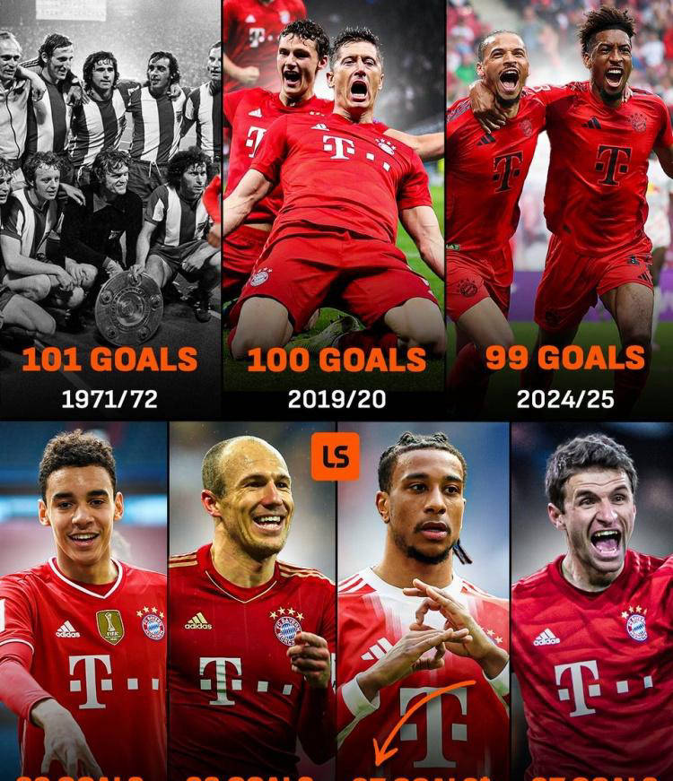 这一纪录是拜仁队史上单赛季德甲的最高进球数,2019-20赛季球队虽然也攻入了100球,但与破纪录擦肩而过。他们在以往多次尝试中屡屡未能达成目标,所以这次他们显然全力以赴。在主教练孔帕尼的指挥下,拜仁的场均进球已达到3.6个,创下了德甲历史上的最佳效率。